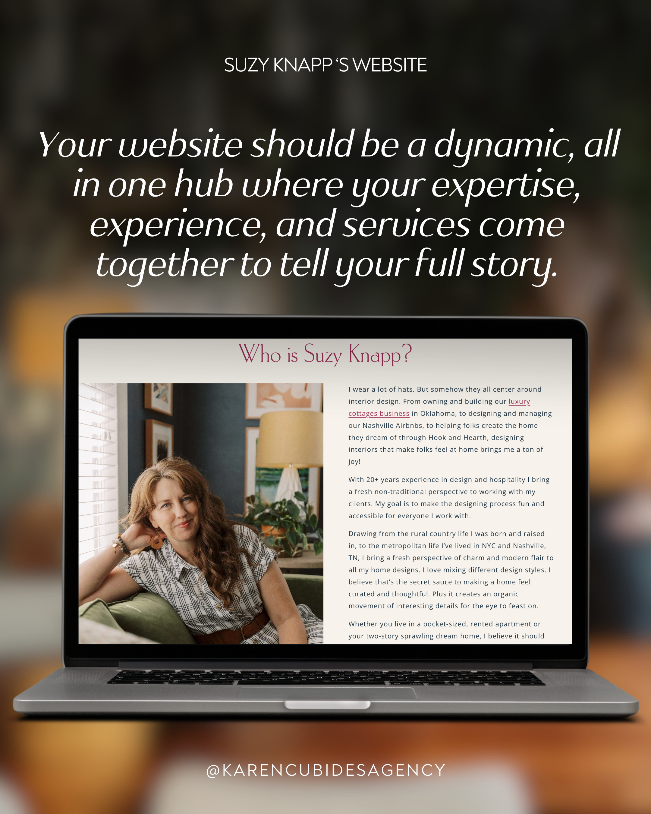 On top of all that, Karen beautifully executed a photography session with a crystal-clear vision of what was needed to build out the gorgeous new website that she and her team created for me. That site came after we had revamped some much-needed backend work in my business—like focusing on what would truly attract my ideal clients and refining my pricing structure. The result is a business foundation that finally feels aligned, professional, and ready to grow.