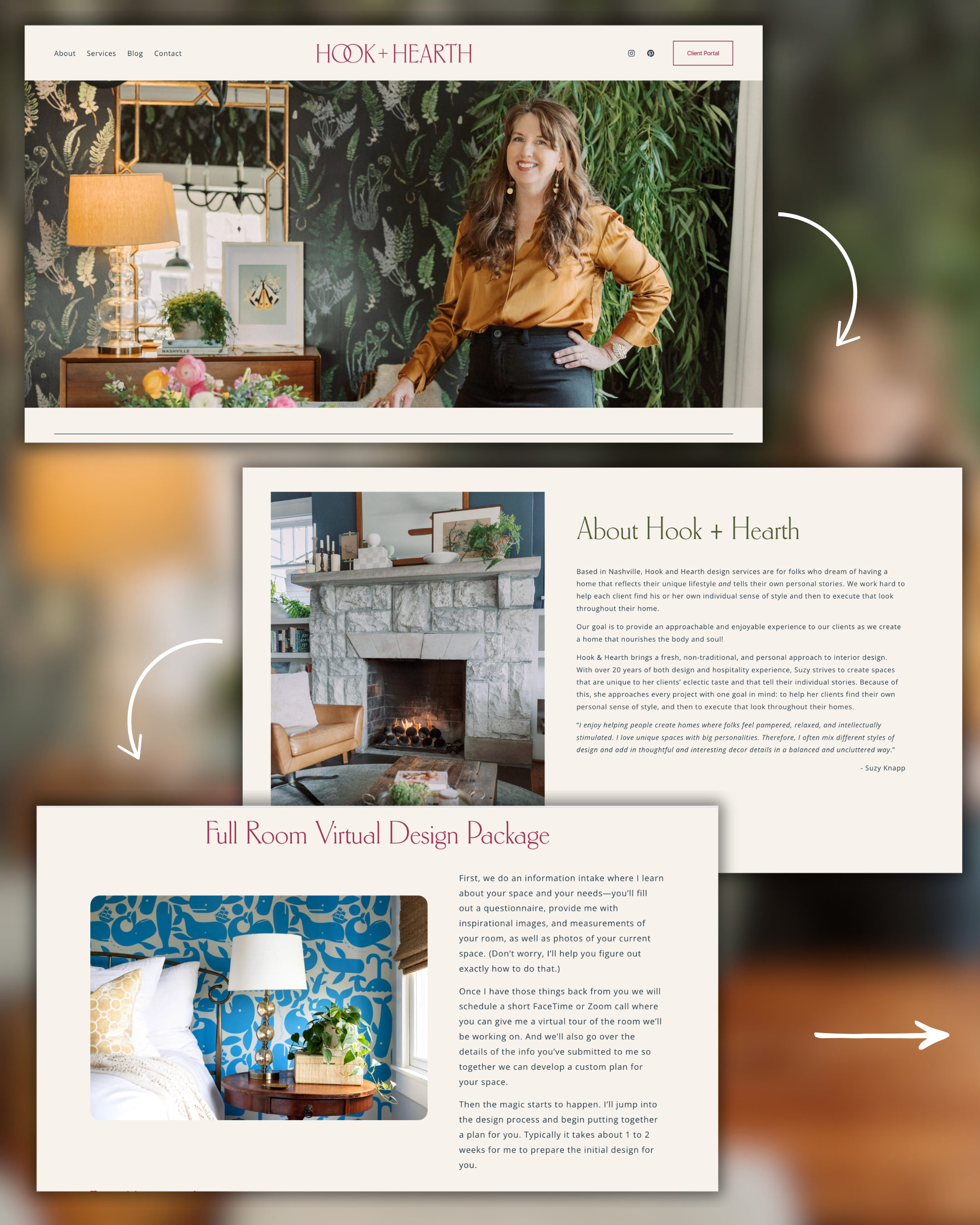 We designed Hook & Hearth’s website to showcase her interior design vision, blending style, functionality, and personality. The site serves as a dynamic space where her portfolio, inspirations, and services come together, inviting visitors to experience her aesthetic firsthand. Every detail reflects her brand’s warmth and creativity, making it more than just a website—it’s a true reflection of her design ethos.